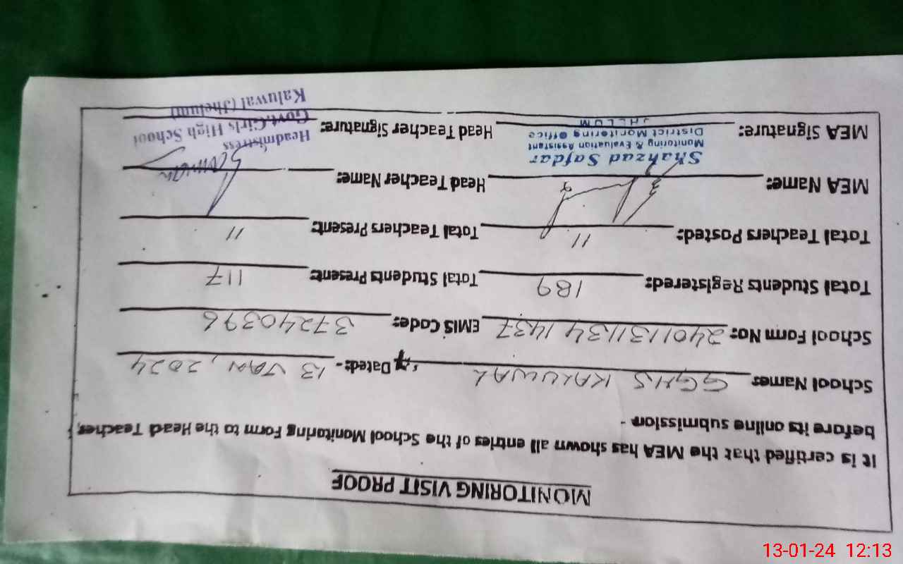 | Attendance Register | Head Teacher | MEA with School | Visit Proof |