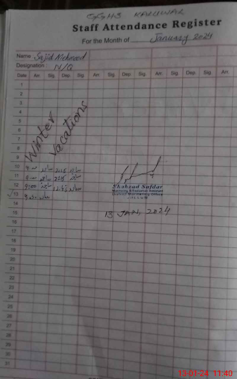 | CNIC | Full Name | Designation | R/C | Absence During Last Calender Month |
