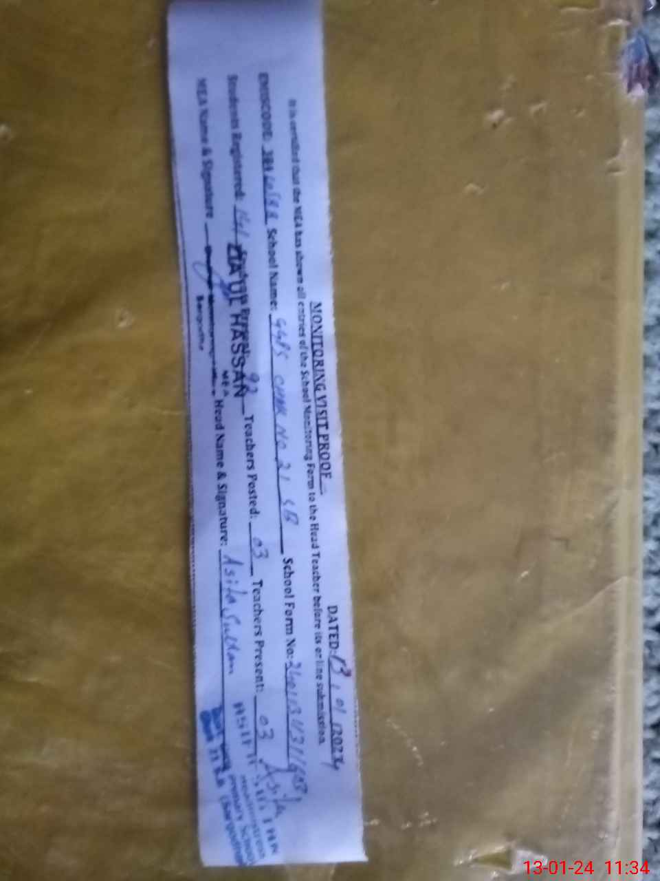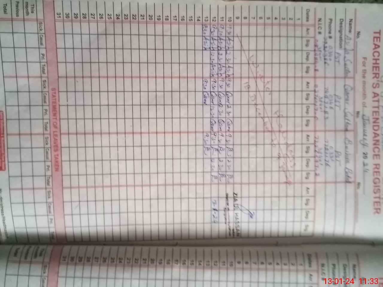 | Name: AS**** SU**** Designation: (School Headmaster's/Headmistress's) PST Phone/Cell Number: 03**** |