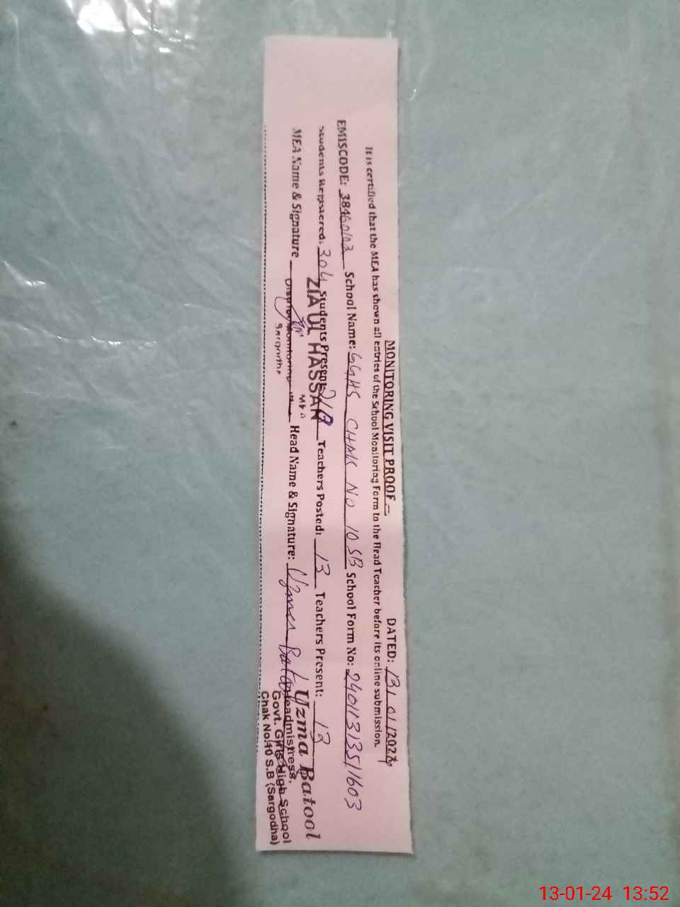 | EMIS Code: 38460102 | Name of School: GGHS CHAK NO.10 SB | |||