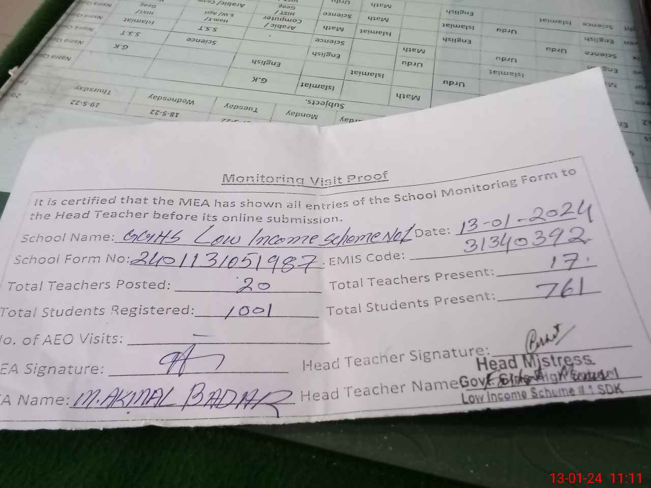 | EMIS Code: 31340392 | Name of School: GGHS LOW INCOME SCHEME NO.1 SETLLITE TOWN | |||