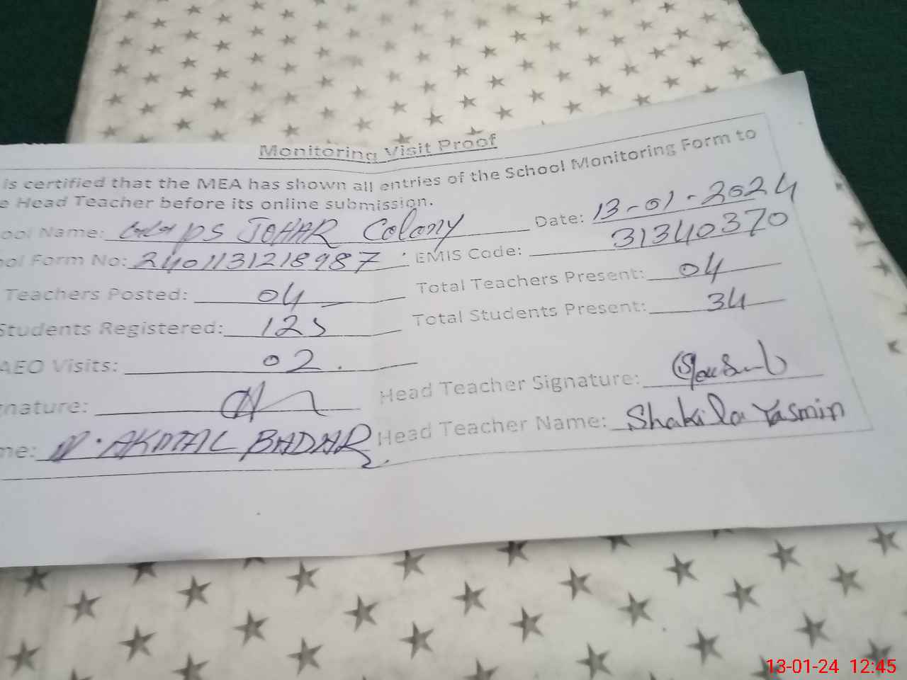 | EMIS Code: 31340370 | Name of School: GGPS JOHAR COLONY | |||