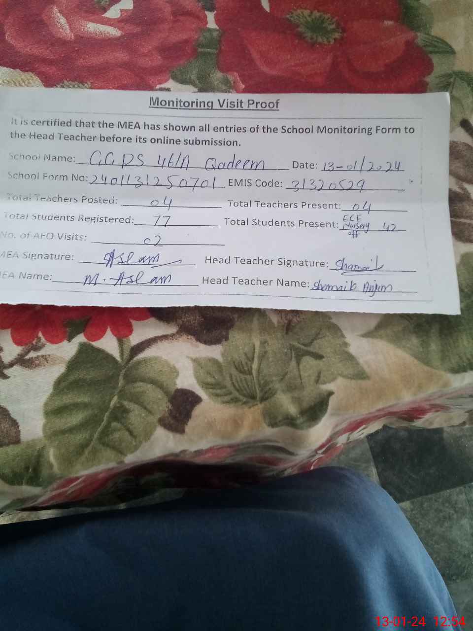 | EMIS Code: 31320529 | Name of School: GGPS CHAK NO.46/A QADEEM | |||