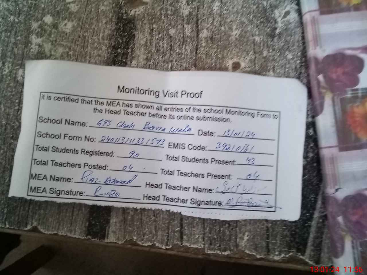 | EMIS Code: 39210161 | Name of School: GPS CHAH BARIAN WALA | |||