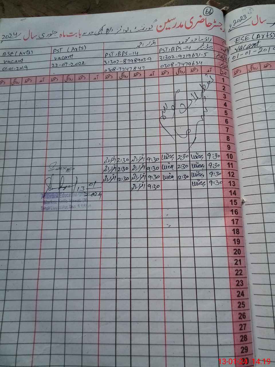 | Name: RA**** MA**** ME**** Designation: (School Headmaster's/Headmistress's) PST Phone/Cell Number: 03**** |