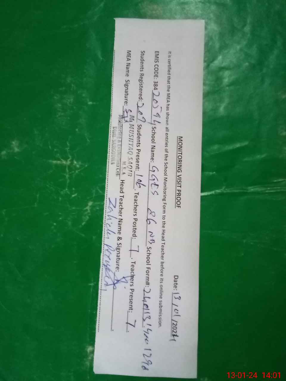 | EMIS Code: 38420594 | Name of School: GGES CHAK NO.86 NB | |||