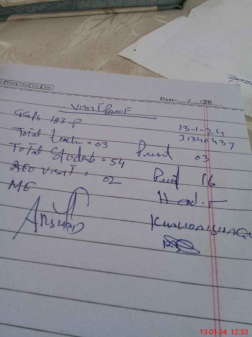| Name: Kh**** Is**** Designation: (School Headmaster's/Headmistress's) PST Phone/Cell Number: 03**** |