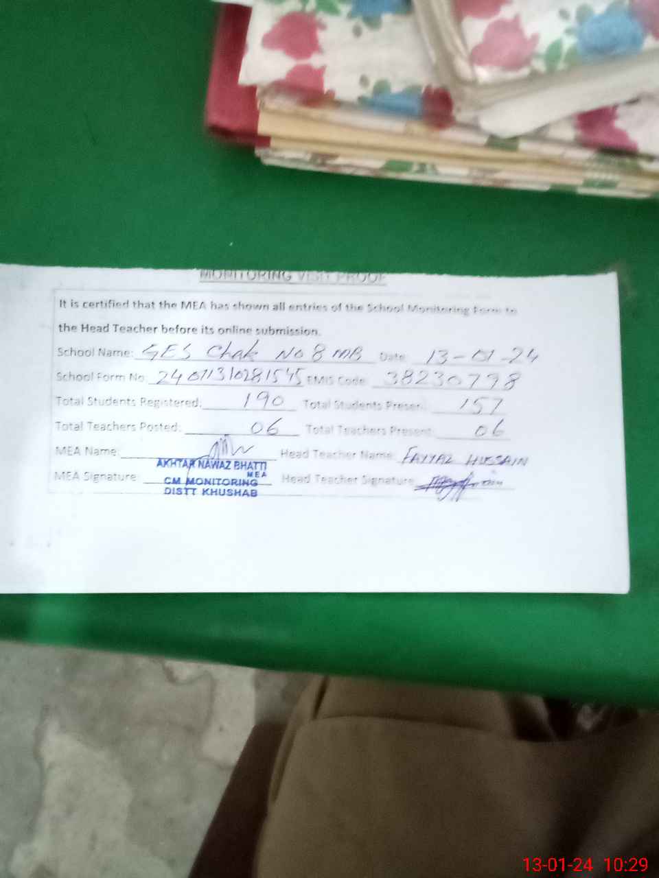 | EMIS Code: 38230798 | Name of School: GES CHAK 8 MB | |||