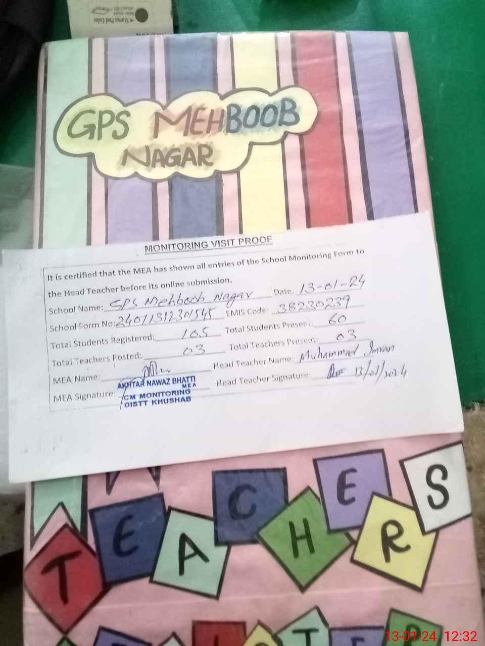 | EMIS Code: 38230239 | Name of School: GPS MEHBOOB NAGAR | |||