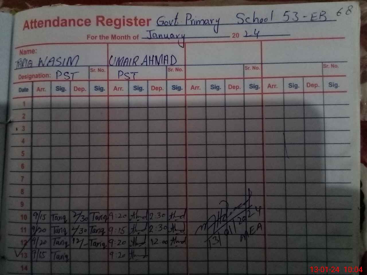 | Name: TA**** WA**** Designation: (School Headmaster's/Headmistress's) PST Phone/Cell Number: 03**** |