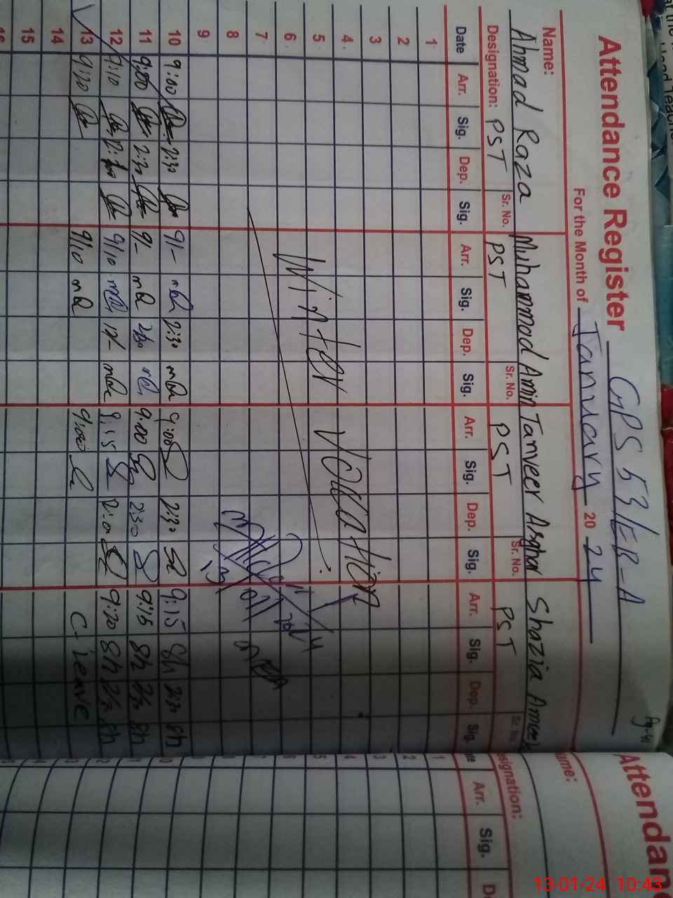 | Name: AH**** RA**** Designation: (School Headmaster's/Headmistress's) PST Phone/Cell Number: 03**** |