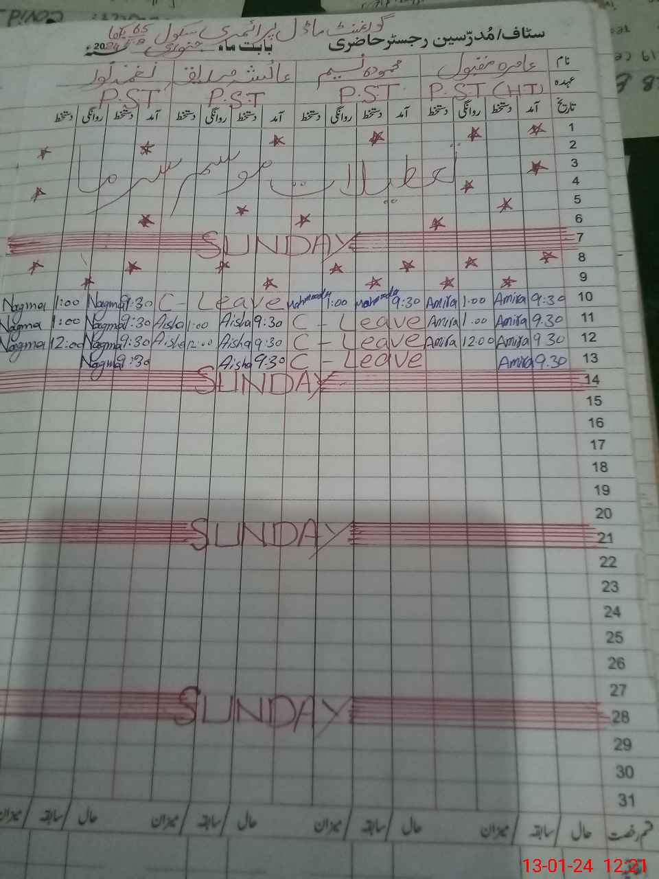 | 36**** | SH**** MA**** | CD | Contract | 0 | 17 | 0 | 0 | 0 | 0 | 0 | 0 | 0 | Absent (Un-Authorized) |