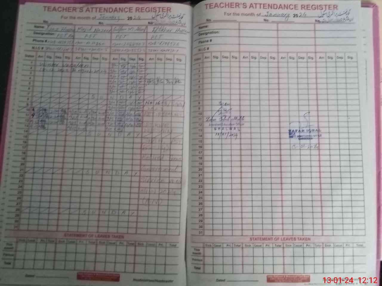 | Name: IJ**** HU**** Designation: (School Headmaster's/Headmistress's) PST Phone/Cell Number: 03**** |