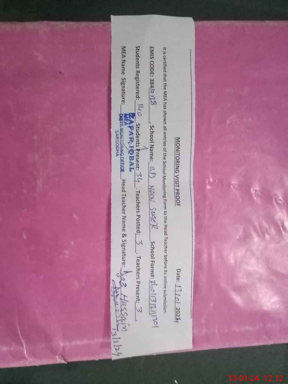 | Attendance Register | Head Teacher | MEA with School | Visit Proof |