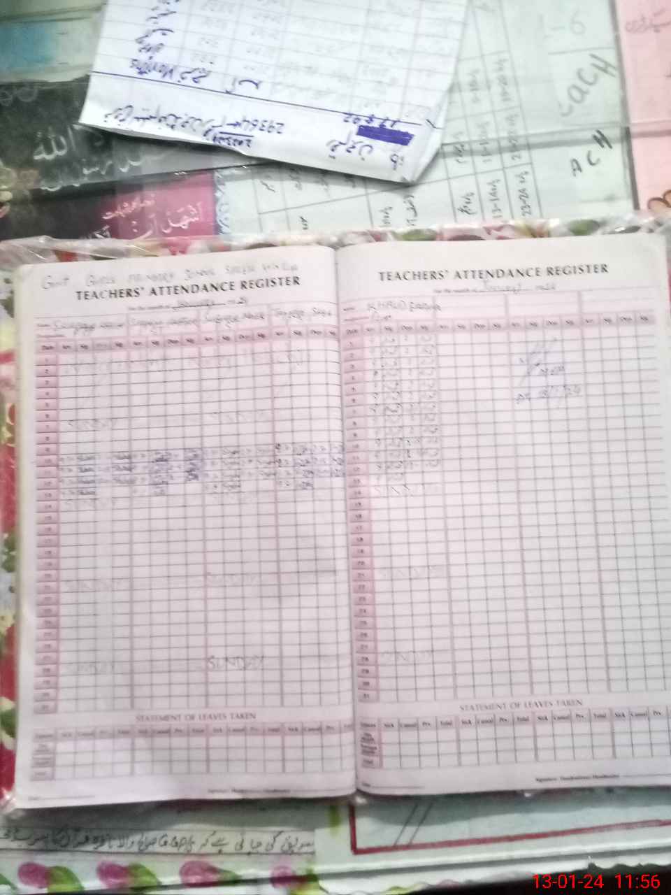 | CNIC | Full Name | Designation | R/C | Absence During Last Calender Month |