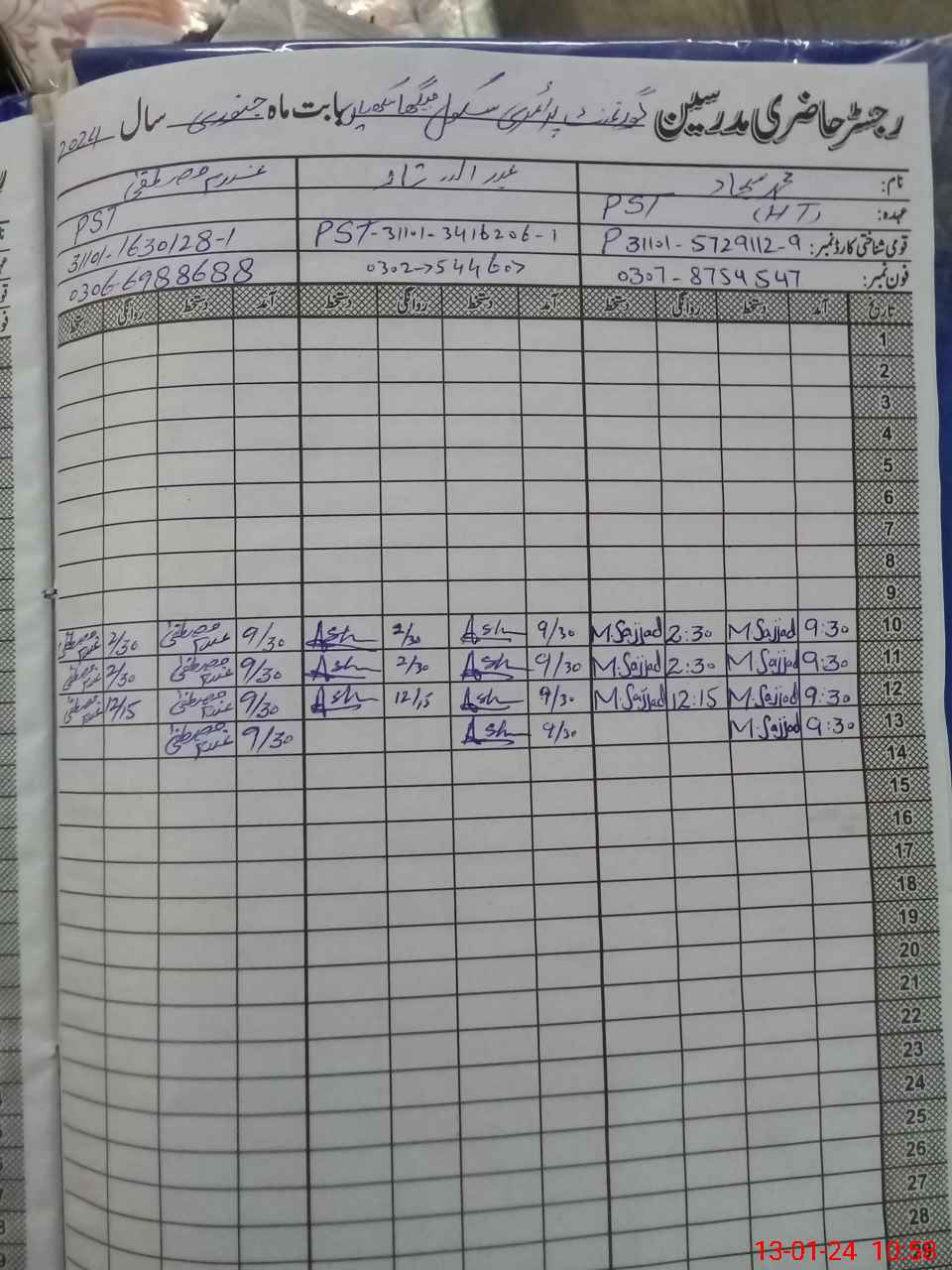 | Name: Mu**** Sa**** Designation: (School Headmaster's/Headmistress's) PST Phone/Cell Number: 03**** |