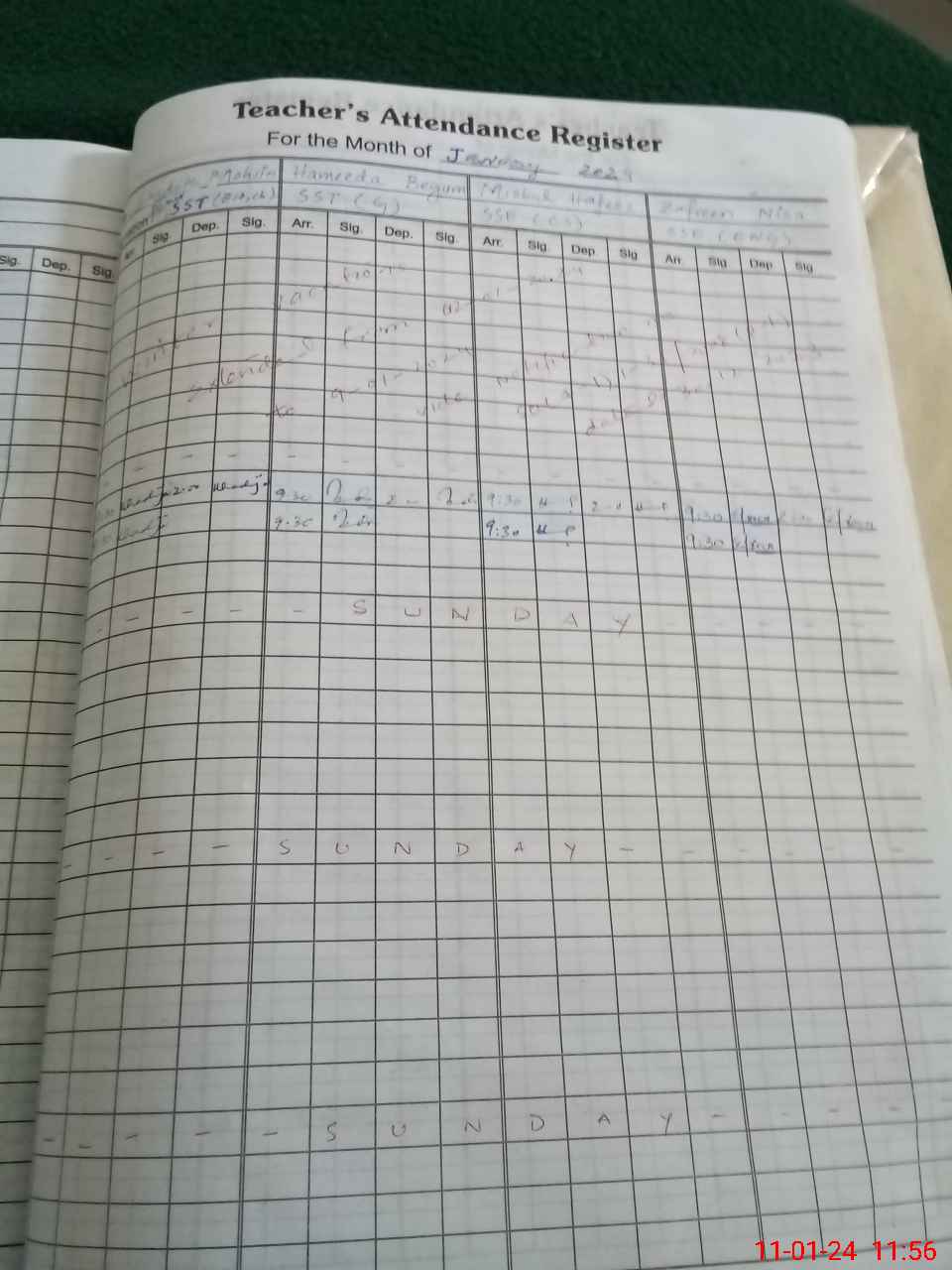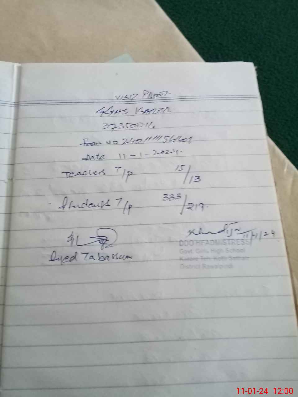 | Remarks (Use Separate Page if Required): Teacher Misbah Bibi nottage on sis she is on casual leave | |||||
