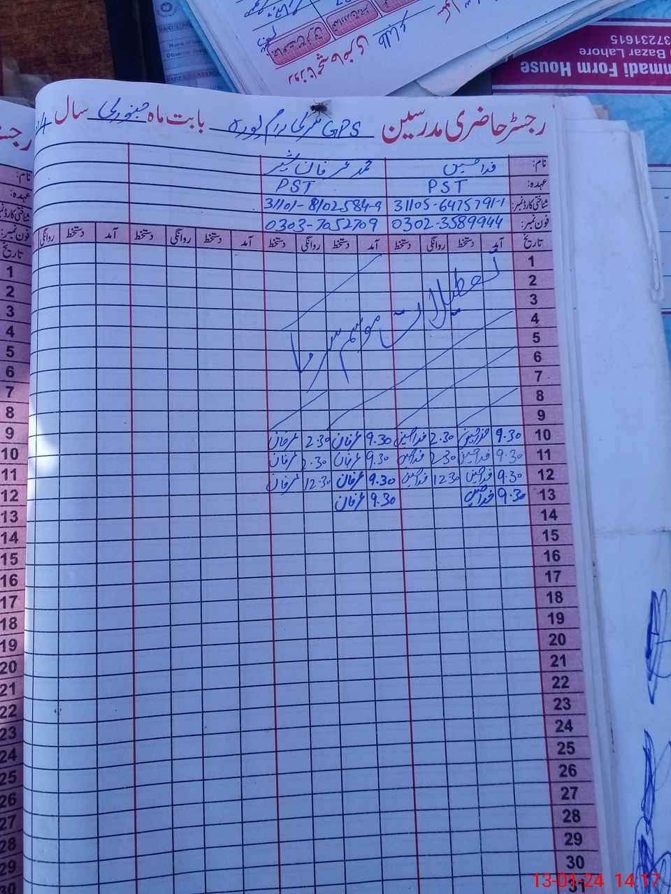 | Name: FI**** HU**** Designation: (School Headmaster's/Headmistress's) PST Phone/Cell Number: 03**** |