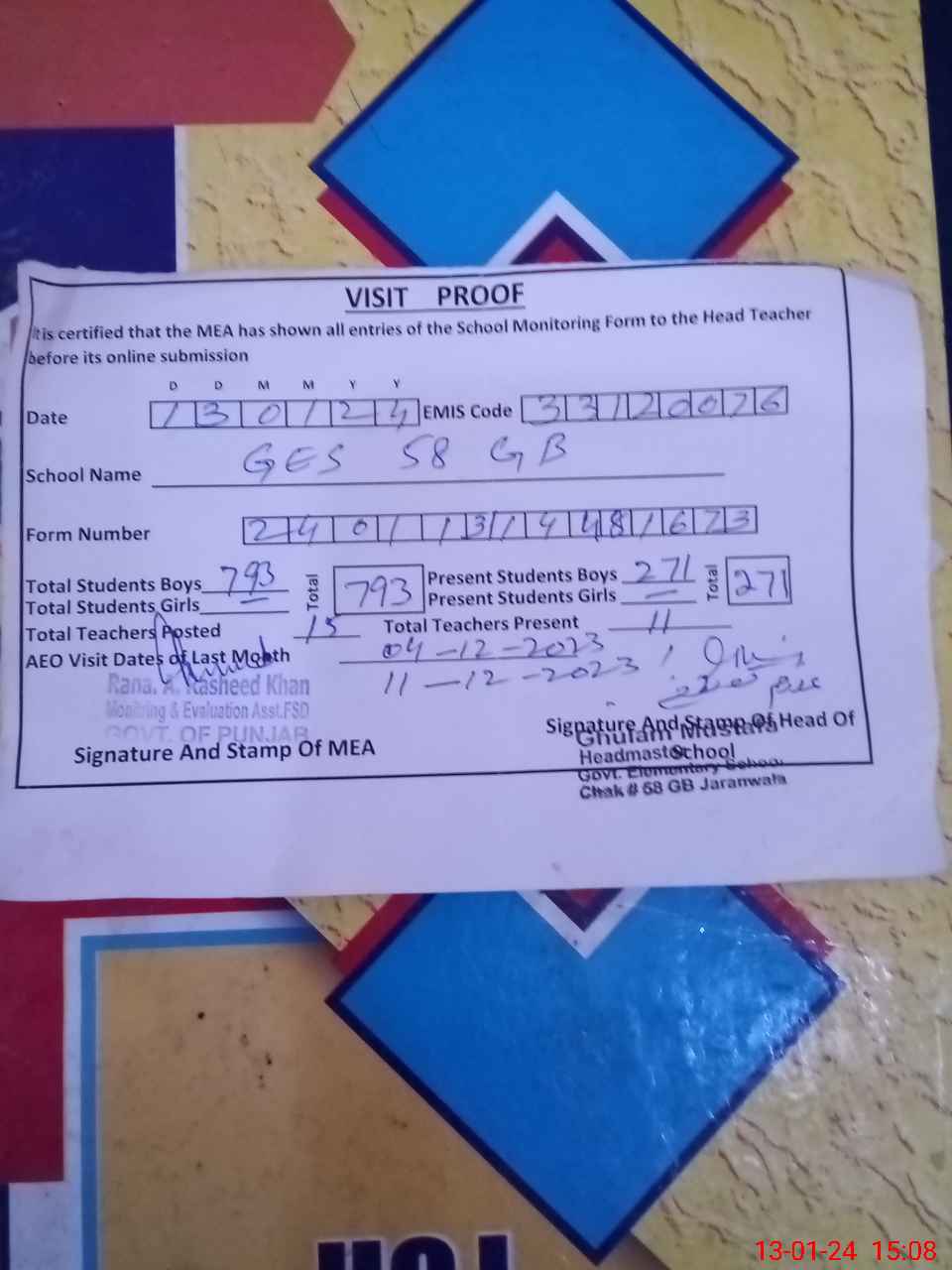 | EMIS Code: 33120076 | Name of School: GES CHAK 58 GB | |||