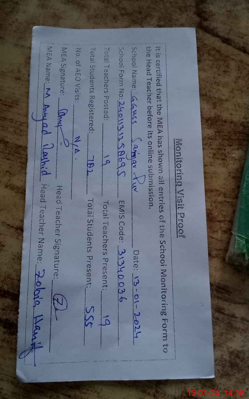 | EMIS Code: 31340036 | Name of School: GGHSS SANJAR PUR | |||