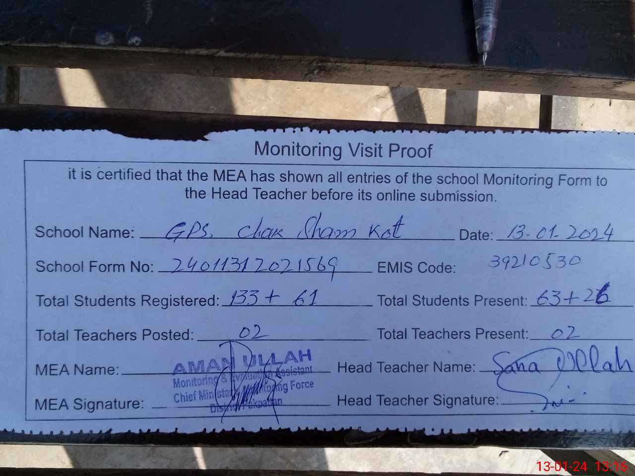 | EMIS Code: 39210530 | Name of School: GPS CHAK SHAM KOT | |||