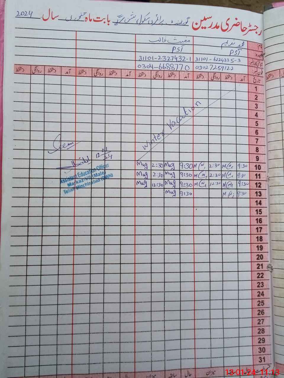| Name: MU**** NA**** Designation: (School Headmaster's/Headmistress's) PST Phone/Cell Number: 03**** |