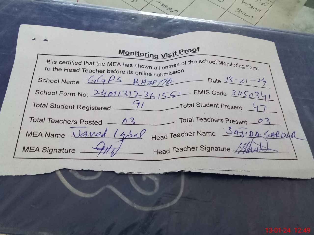 | EMIS Code: 31150341 | Name of School: GGPS BHUTTA | |||