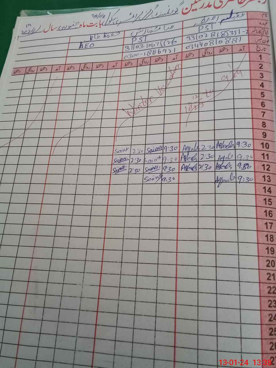 | Name: AQ**** AS**** Designation: (School Headmaster's/Headmistress's) PST Phone/Cell Number: 03**** |