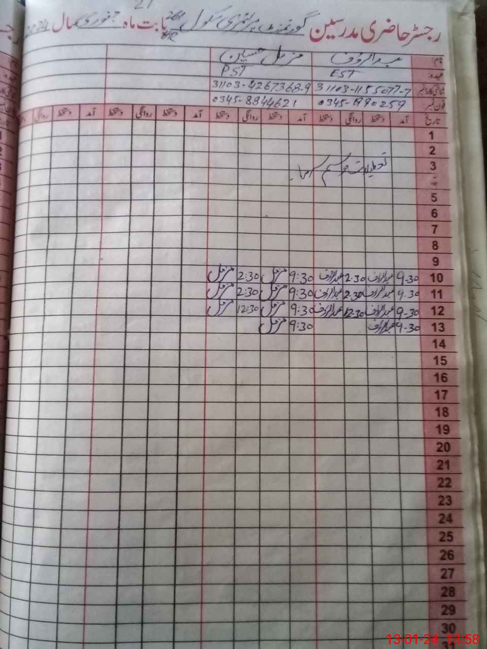 | Name: AB**** RA**** Designation: (School Headmaster's/Headmistress's) PST Phone/Cell Number: 03**** |