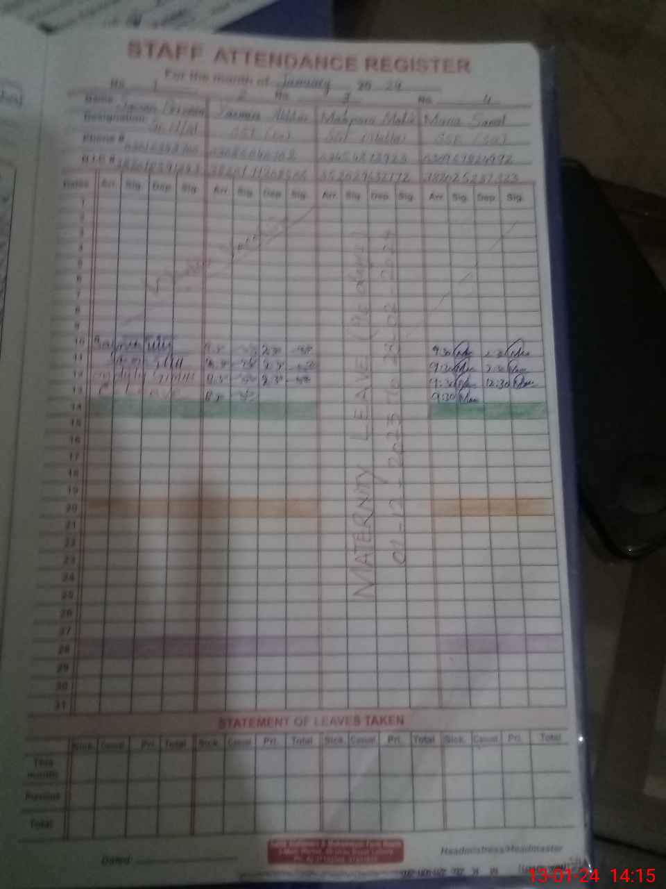 | 38**** | An**** Kh**** | CLASS IV | 2 | 29 | 0 | 0 | 0 | 0 | 0 | 0 | 2 | Maternity | |
