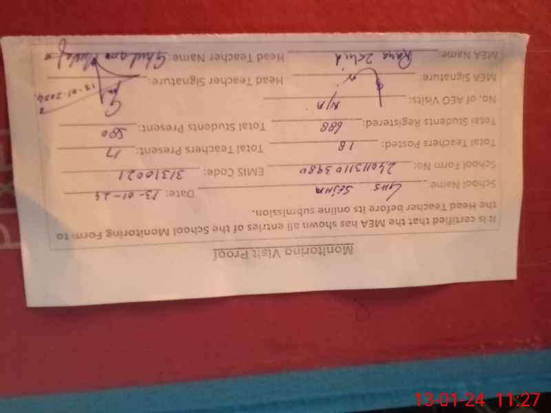 | Attendance Register | Head Teacher | MEA with School | Visit Proof |