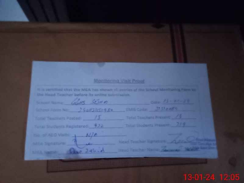 | Attendance Register | Head Teacher | MEA with School | Visit Proof |