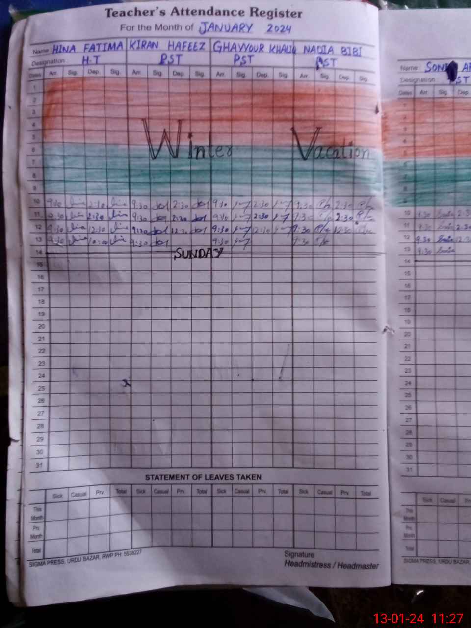 | Leave | Duty | Absent | Maternity | Medical | Ex- Pak |