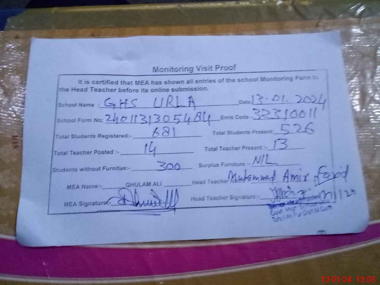 | EMIS Code: 32310011 | Name of School: GHS URLA | |||