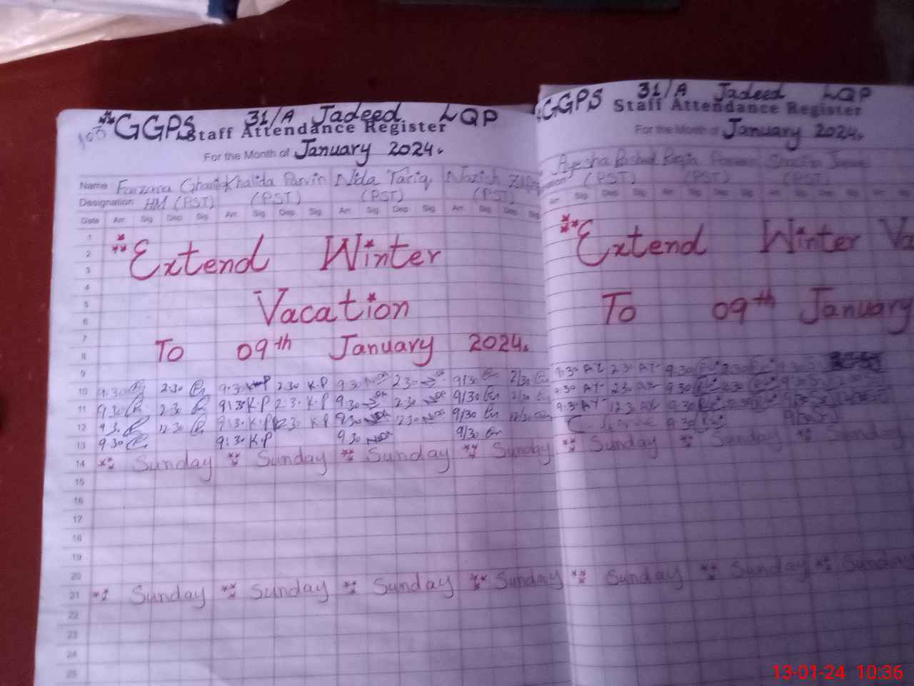 | Monitoring Date: 13-01-2024 | Start Time: 13-01-2024 09:49 AM | End Time: 13-01-2024 10:40 AM | Name of MEA: Kh**** Fa**** | |