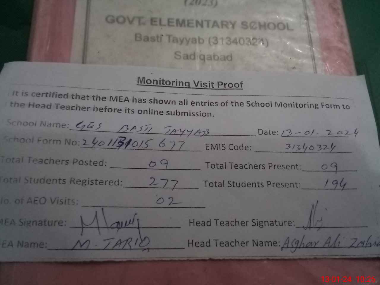 | EMIS Code: 31340324 | Name of School: GES BASTI TAYYAB | |||
