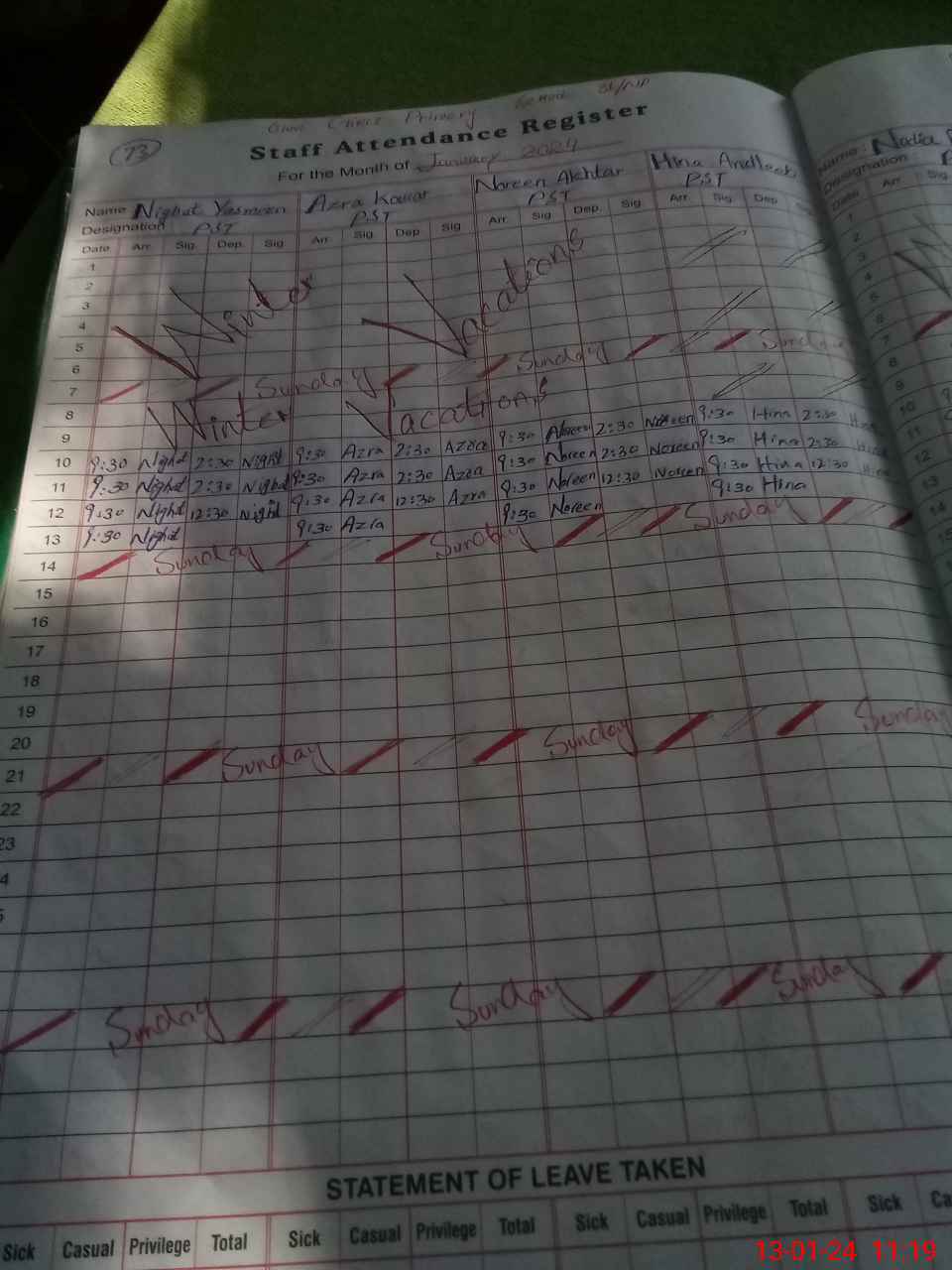 | Leave | Duty | Absent | Maternity | Medical | Ex- Pak |