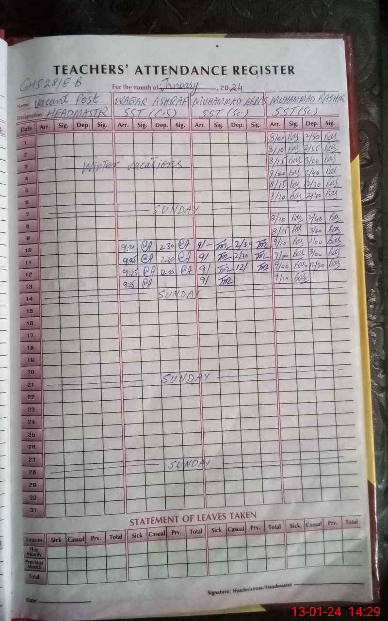 | 36**** | MU**** SA**** | J C | Regular | 0 | 0 | 0 | 0 | 0 | 0 | 0 | 0 | 0 | Absent (Un-Authorized) |