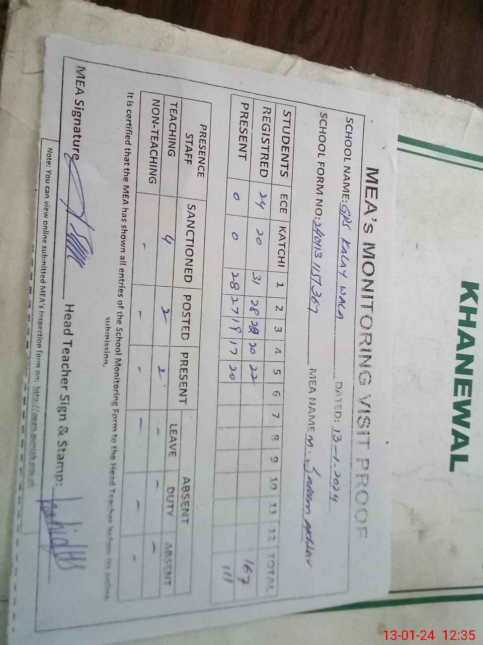 | EMIS Code: 36410566 | Name of School: GPS KALAY WALA, MOUZA JALEEL PUR, ABDUL HAKIM | |||
