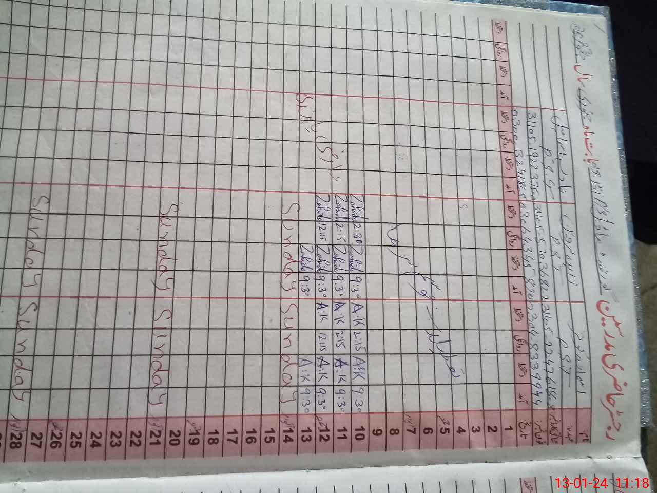 | CNIC | Full Name | Designation | R/C | Absence During Last Calender Month |
