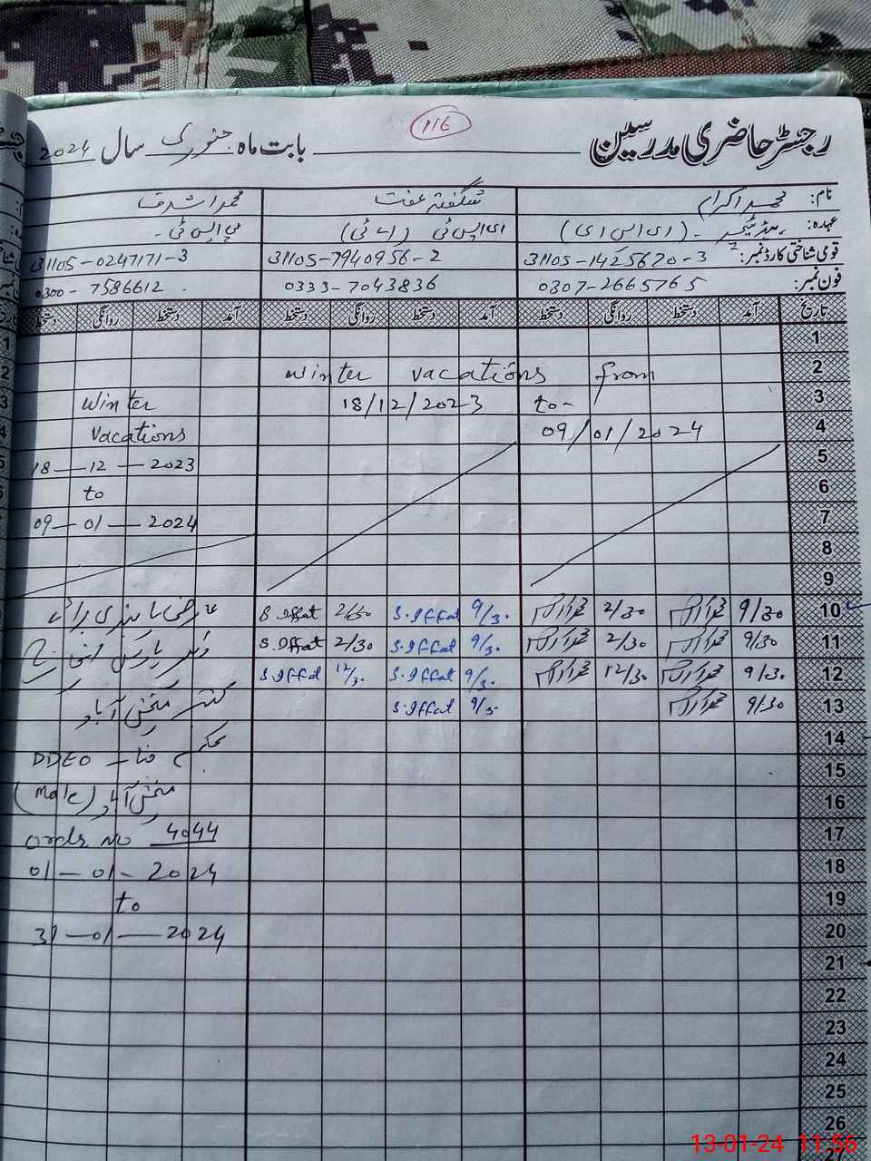 | Name: MIk**** Designation: (School Headmaster's/Headmistress's) PST Phone/Cell Number: 03**** |