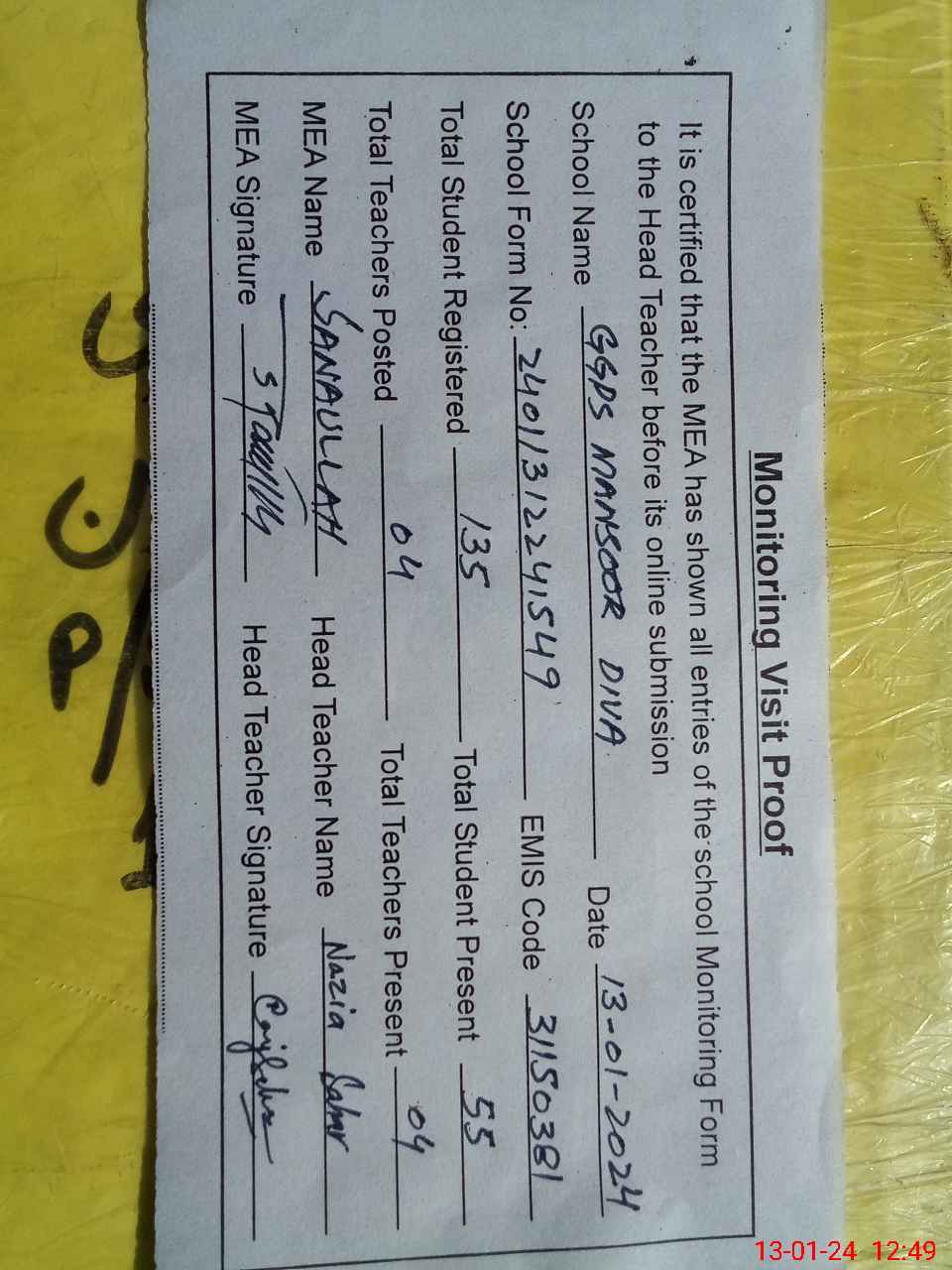 | EMIS Code: 31150381 | Name of School: GGPS MANSOOR DIVA | |||