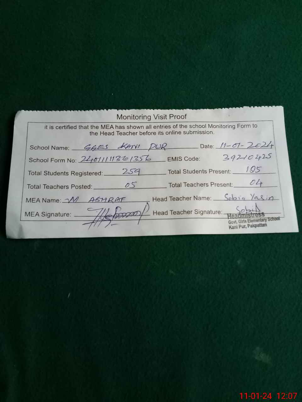 | EMIS Code: 39210425 | Name of School: GGES KANI PUR | |||