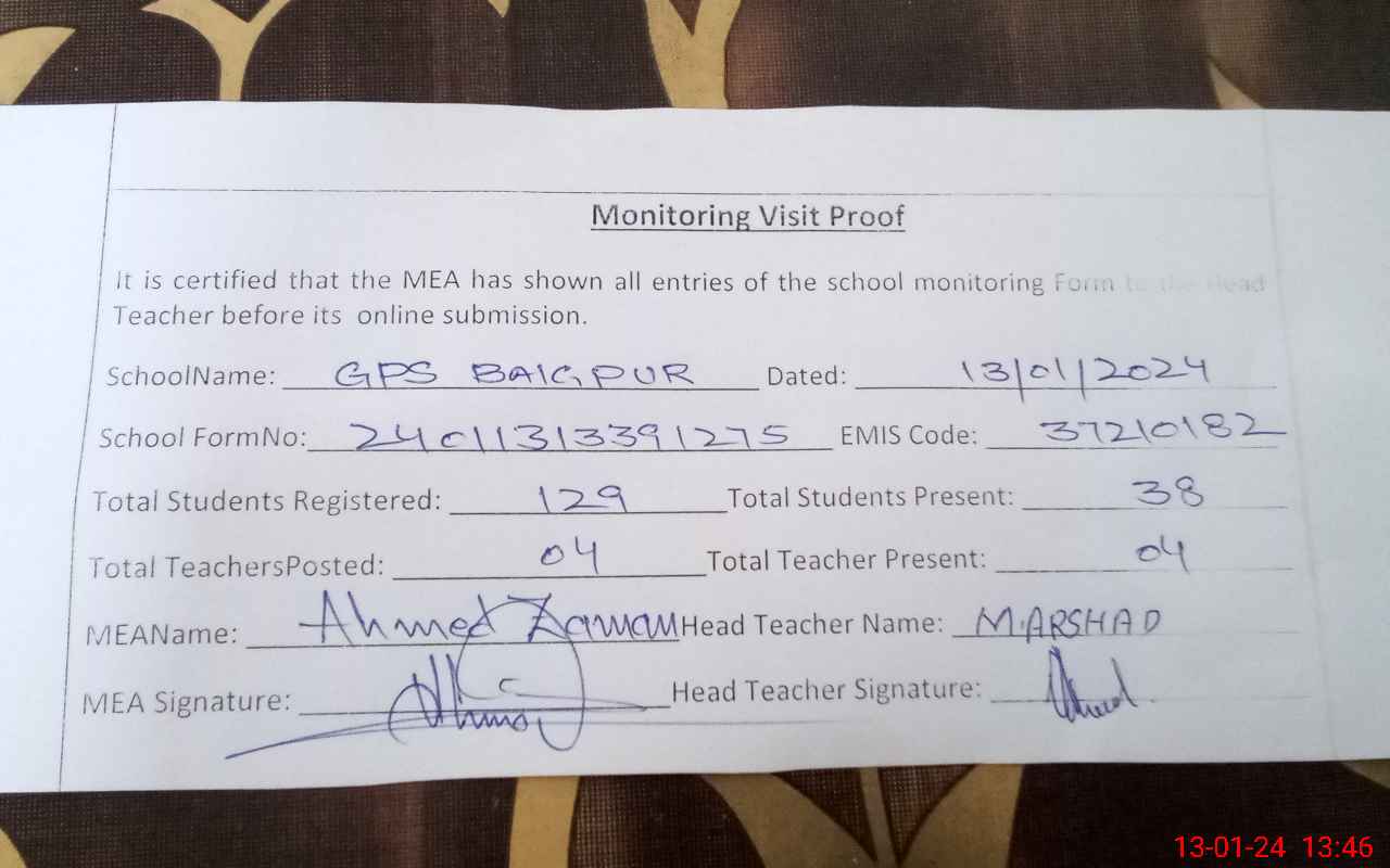 | EMIS Code: 37210182 | Name of School: GPS BAIG PUR | |||