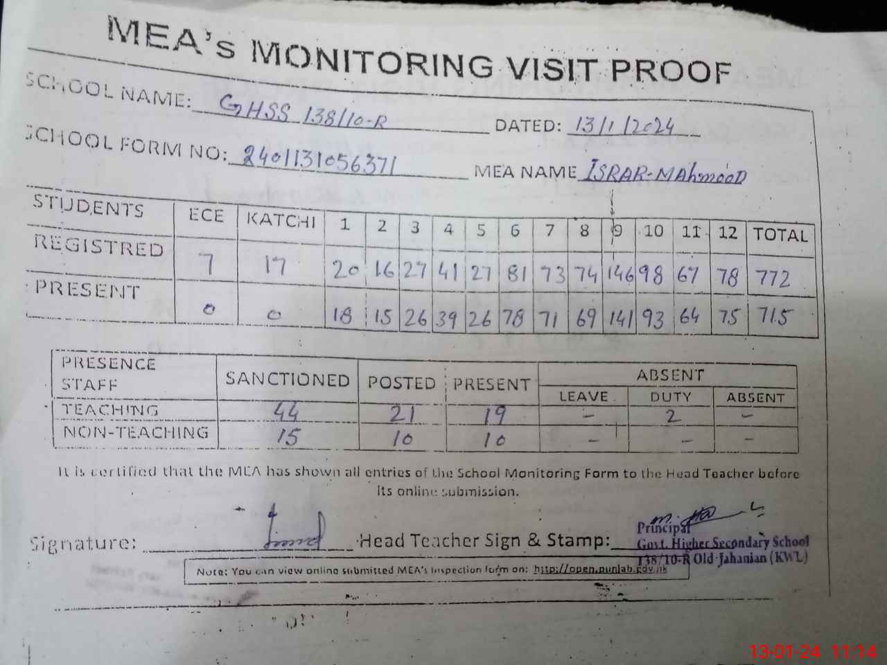 | EMIS Code: 36440036 | Name of School: GHSS 138/10-R, JAHANIAN | |||