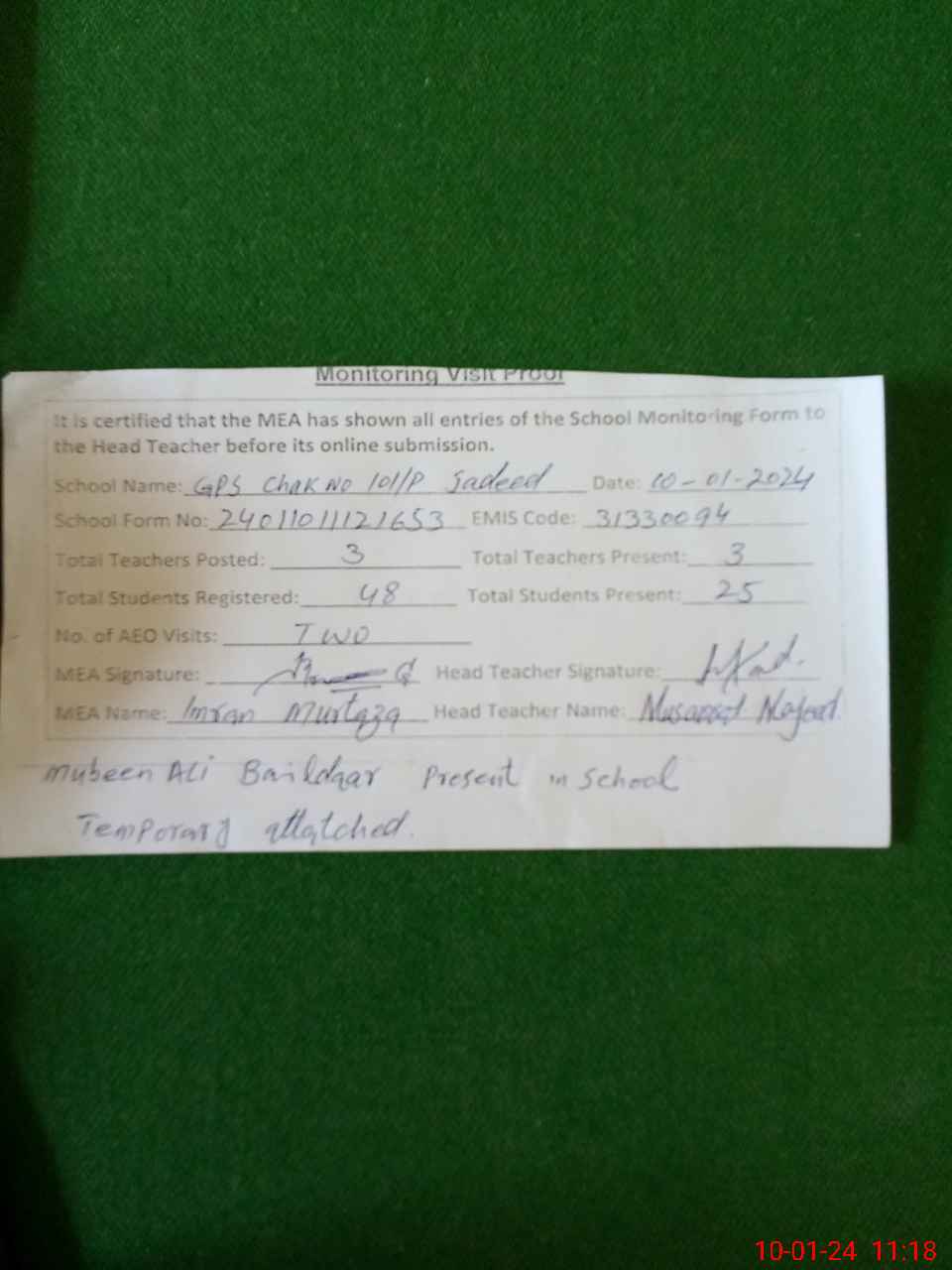 | EMIS Code: 31330094 | Name of School: GPS CHAK 101/P JADEED | |||