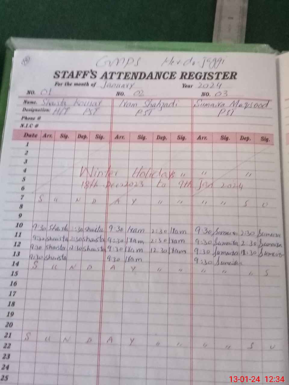 | Name: Sh**** Ko**** Designation: (School Headmaster's/Headmistress's) PST Phone/Cell Number: 03**** |