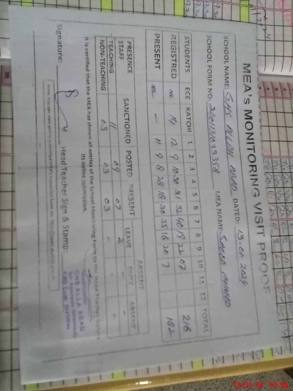 | Monitoring Date: 13-01-2024 | Start Time: 13-01-2024 09:48 AM | End Time: 13-01-2024 10:40 AM | Name of MEA: Sa**** Ah**** | |