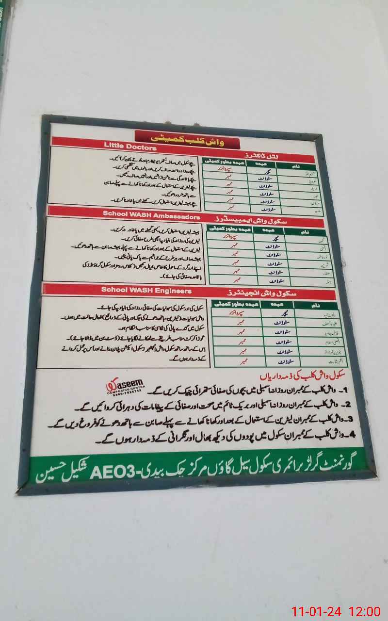 | District: PAKPATTAN | Tehsil: PAKPATTAN | Markaz: CHAKBEDI 3 - FEMALE | Level: Primary | |