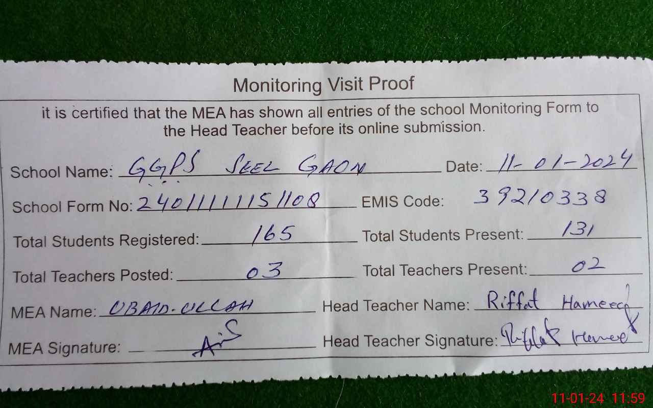 | EMIS Code: 39210338 | Name of School: GGPS SEEL GAON | |||